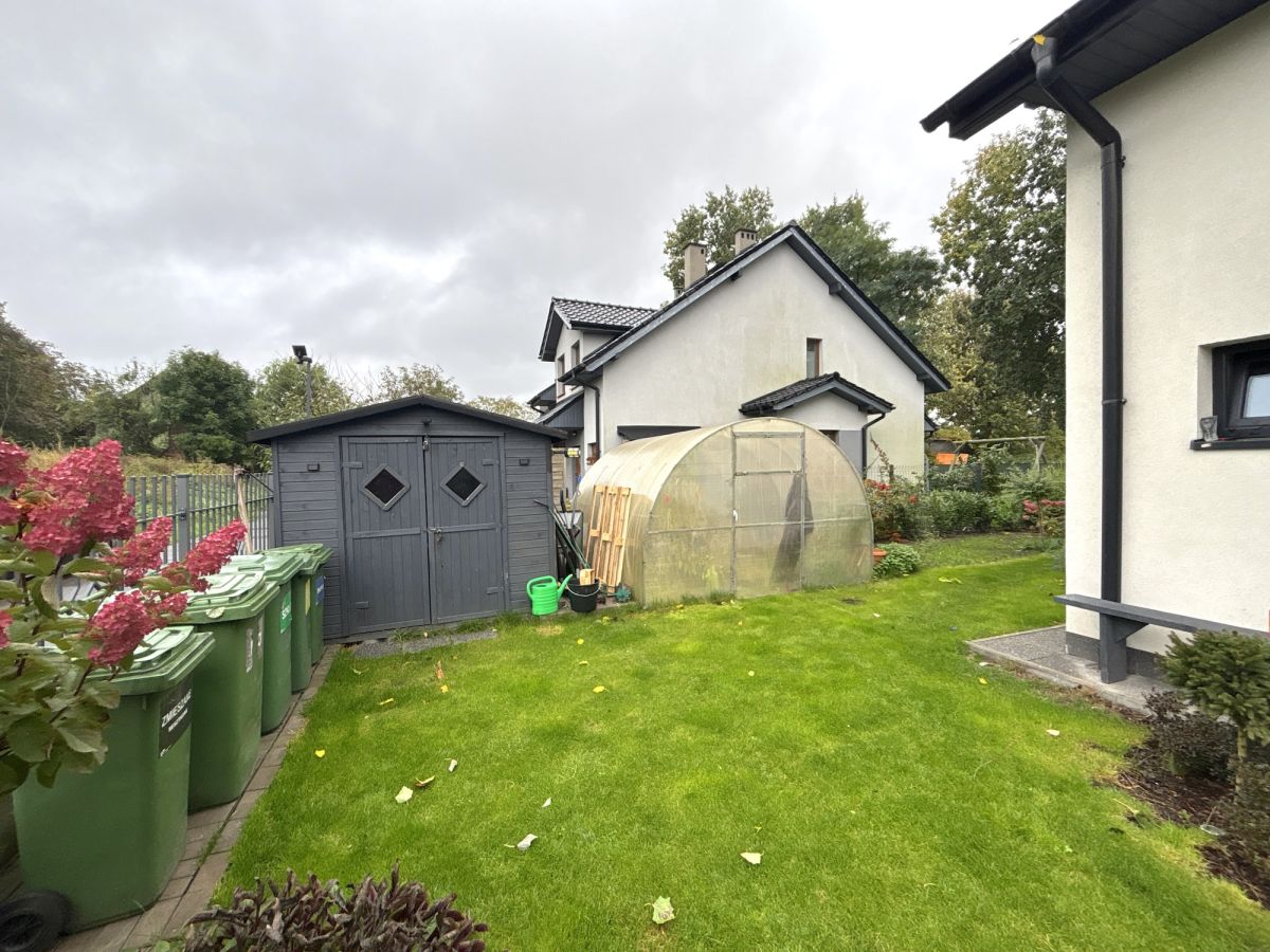 Przy domu stoi mała szklarnia i jest ogródek jarzynowy, w ogrodzie jest miejsce na grilla. Taras jest w pełni zadaszony.